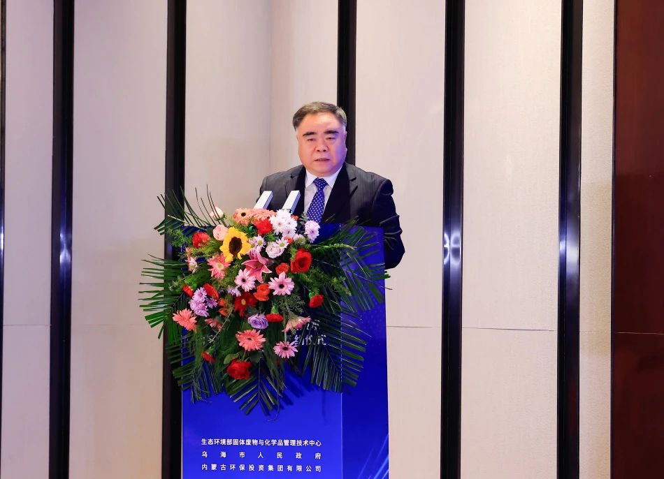 生態(tài)環(huán)境部固管中心副主任胡華龍致辭,他表示,生態(tài)環(huán)境部固管中心將認真落實協(xié)議內容,全方位與烏海市人民政府和內蒙古環(huán)投集團開展合作,搭建資源共享和技術交流平臺,推動科技成果的轉化應用,為解決工業(yè)固體廢物問題提供強有力的技術支持。